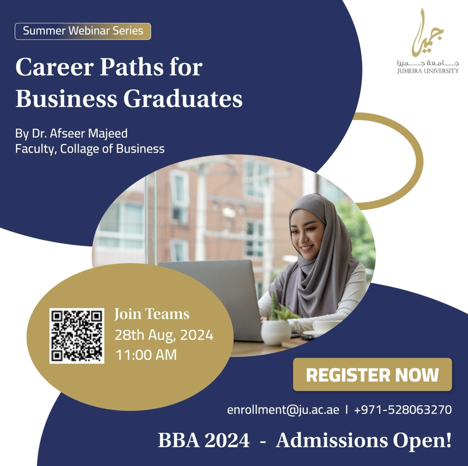 أطلق العنان لقدراتك هذا الصيف من خلال سلسلة ندواتنا الحصرية عبر الإنترنت، والتي تركز على المسارات الوظيفية المتنوعة للخريجين في جامعة جميرا! 🌟