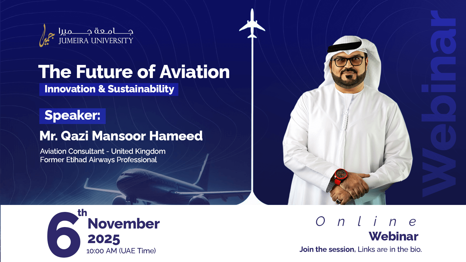 As the aviation sector experiences rapid transformation driven by technology, sustainability, and new operational standards, Jumeira is pleased to host a special webinar titled “The Future of Aviation – Innovation & Sustainability”.